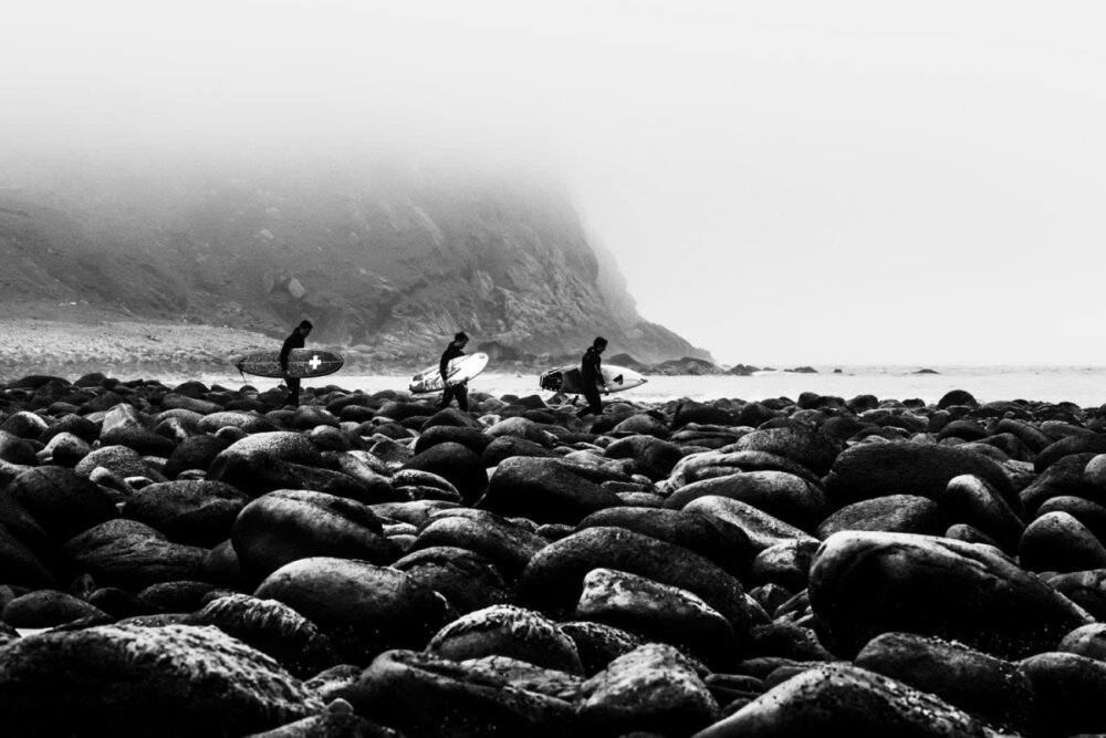 “When I was asked to dream up and photograph a trip in harsh conditions, a 700 kilometer journey through the Sahara desert in Mauritania came to mind. Our risky rail journey started from the iron-mining center of Zouérat in the Sahara, and snaked through the barren desert toward the port of Nouadhibou on the Atlantic. We wanted to get to the coast to try to find some unexplored surf breaks and capture the spirit of adventure and exploration through this incredible landscape.”