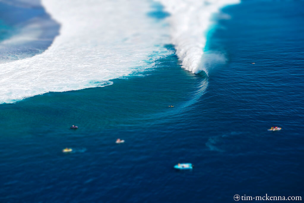 It’s a surf photographer’s dream! One of the best out there at capturing Teahupo’o is Tim Mckenna. Presented here are aerial images of Teahupo’o using the tilt-shift photography technique. We’ve picked out some of our favourites below, including beautiful shots of Tahiti, in French Polynesia, on Tim’s website.